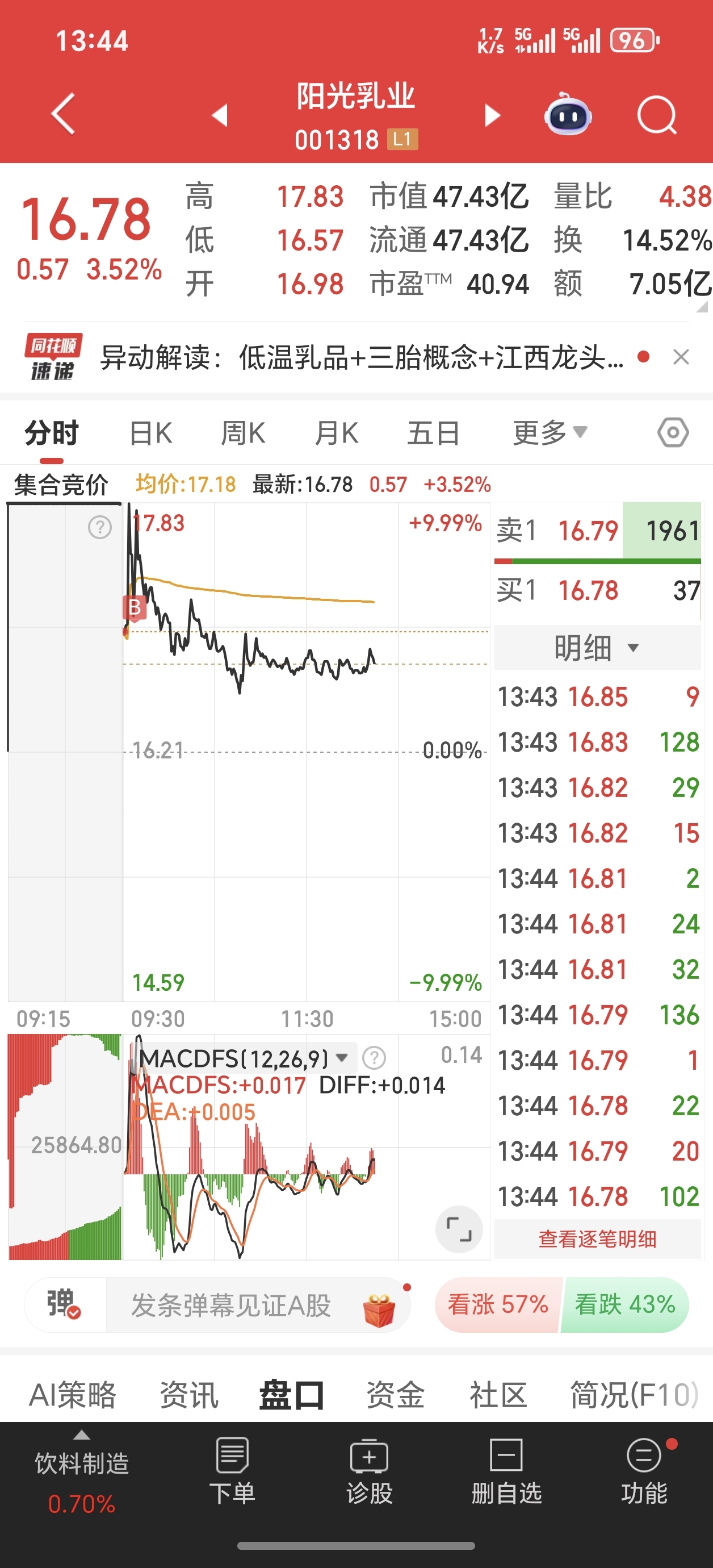 $阳光乳业(SZ001318)$ 早上竞价进去封板以为稳了,下午一看跳水这么离谱