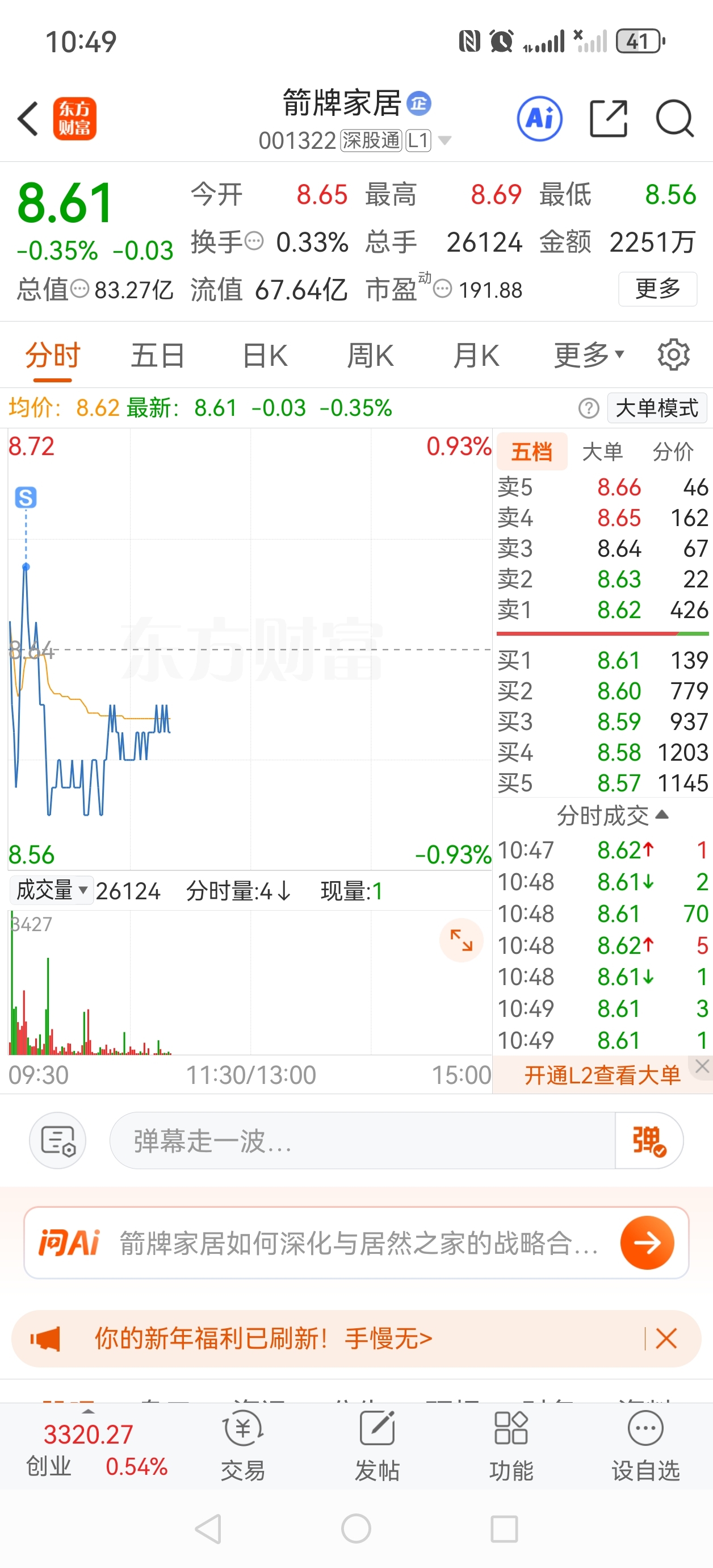 $箭牌家居(SZ001322)$ 山顶乘凉
