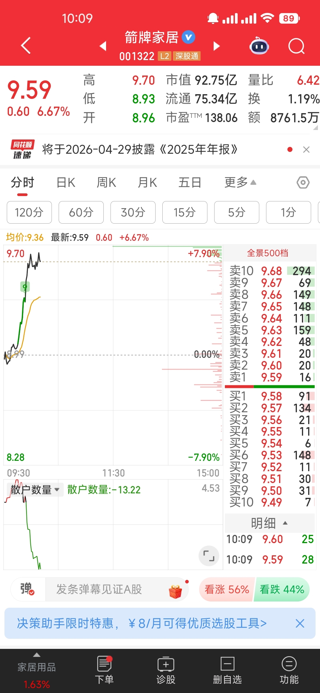 $箭牌家居(SZ001322)$ 散户大幅流出
