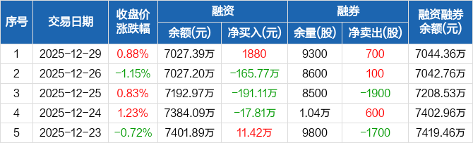 长青科技:融资净买入1880元,融资余额7027.39万元(12-29)
