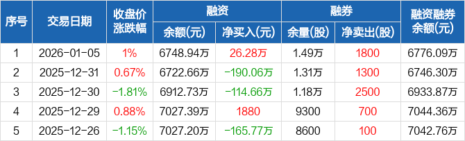 长青科技:融资净买入26.28万元,融资余额6748.94万元(01-05)