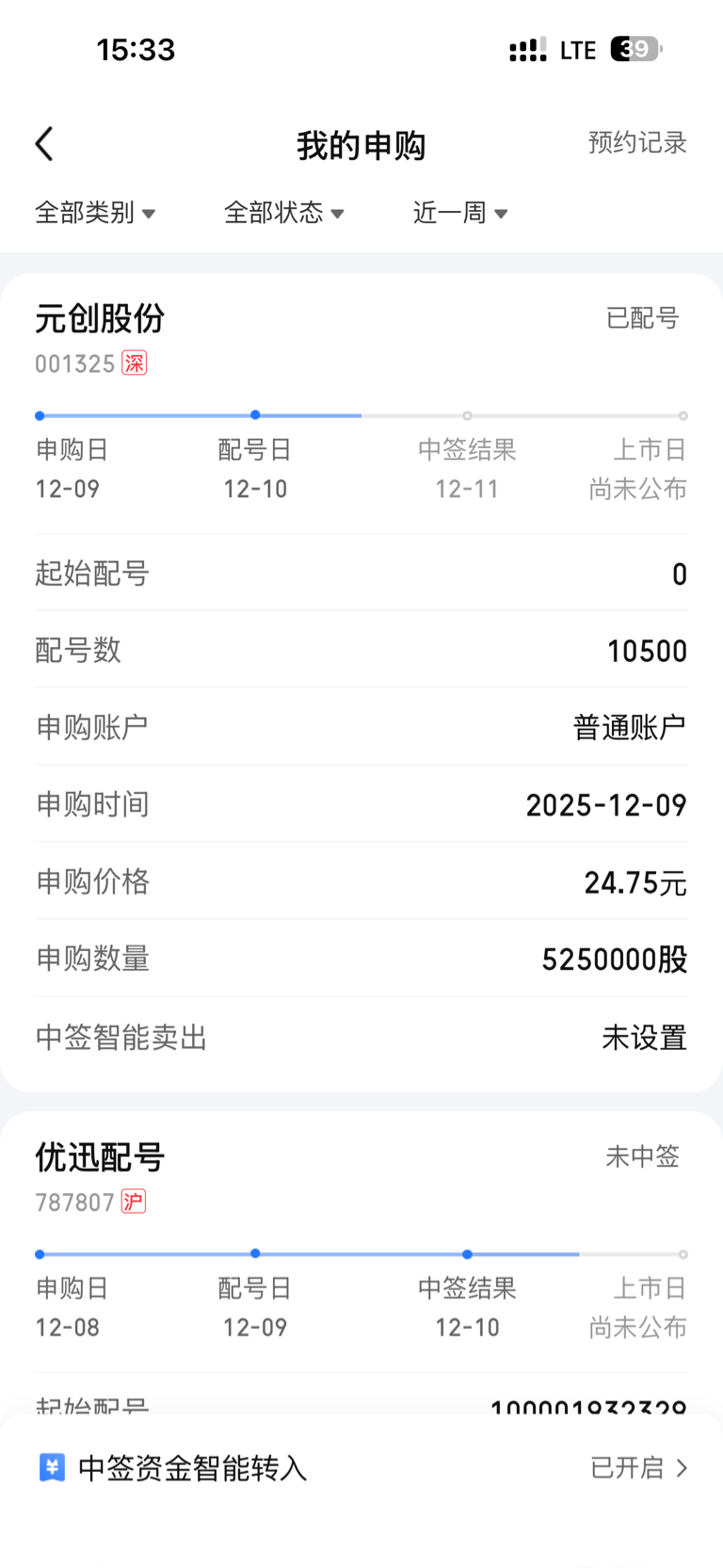 $元创股份(SZ001325)$ 10500个配号,绝了,100%中