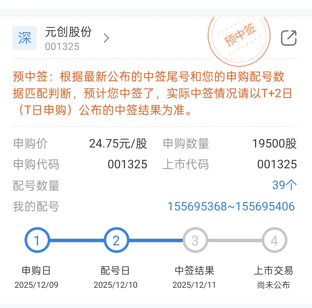 $元创股份(SZ001325)$ 总算轮到我了,二十多万的没搞到,这个两万总可以给我吧