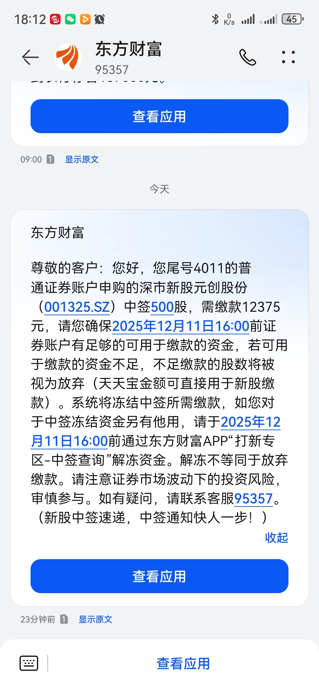 $元创股份(SZ001325)$ 炒股一年多,第一次中签