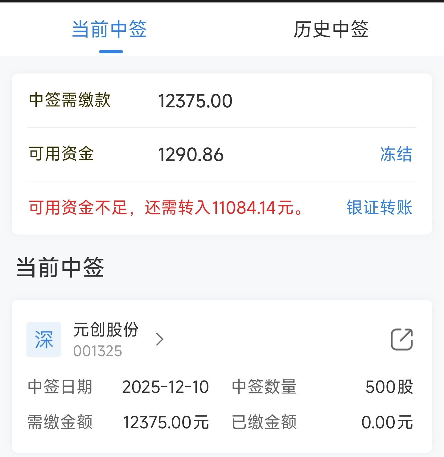 $元创股份(SZ001325)$ 这是什么情况刚才还有足够的钱 现在怎么显示资金不足