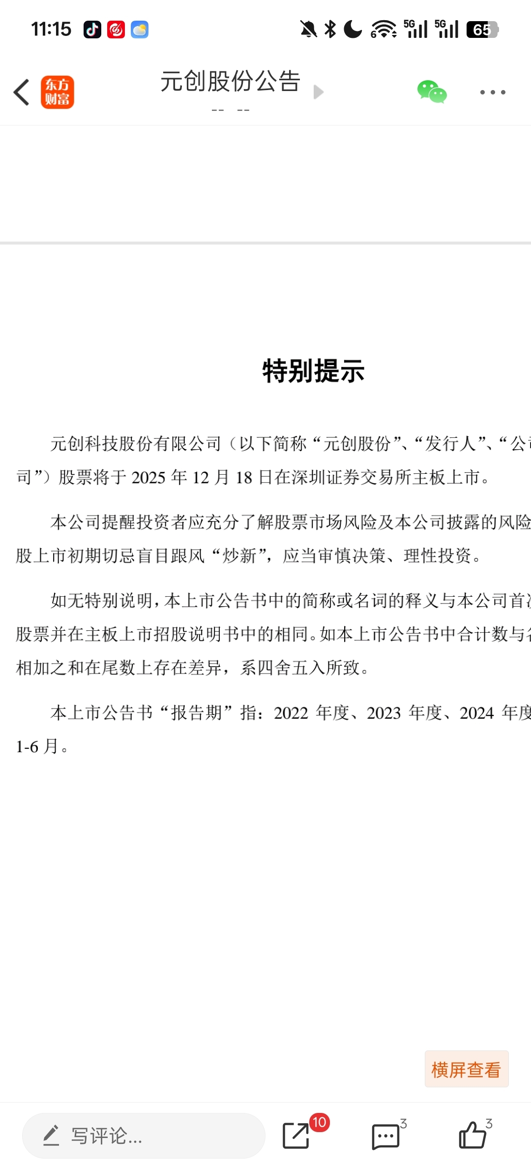$元创股份(SZ001325)$ 确定18好上市 提前了 应该是好事