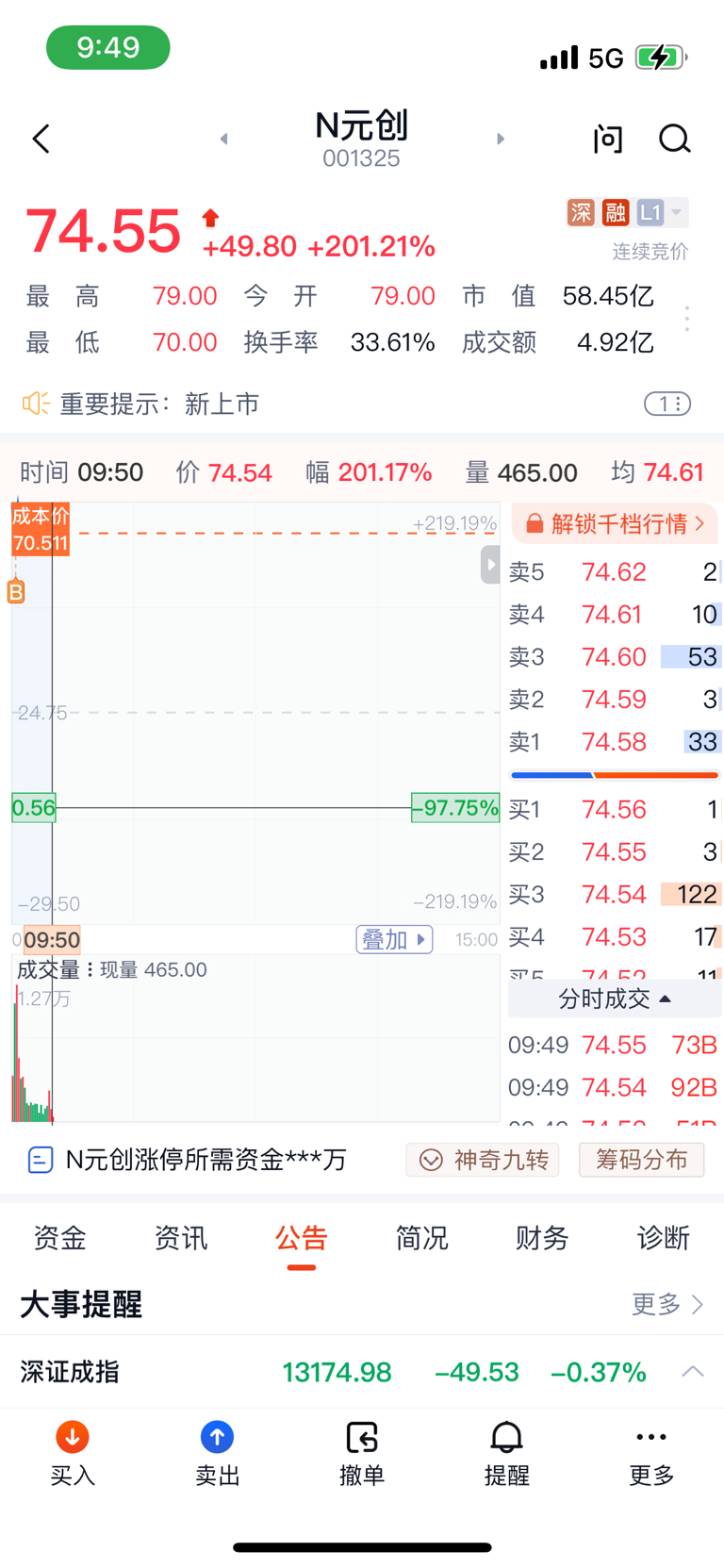 $N元创(SZ001325)$ 这个70.5全仓那个竞价丢了