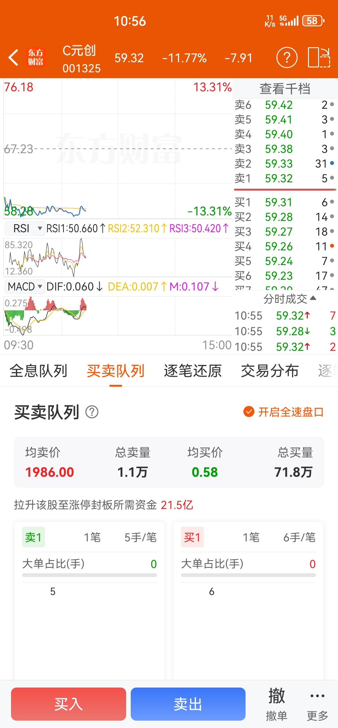 $C元创(SZ001325)$ 均买价均卖价,挂单的真是个人才