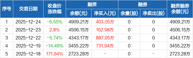 C元创股份:融资净买入403.05万元,融资余额4909.21万元(12-24)