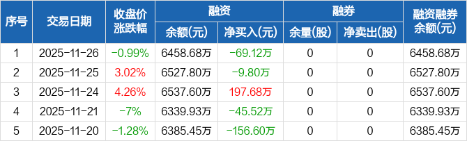 联域股份:融资净偿还69.12万元,融资余额6458.68万元(11-26)