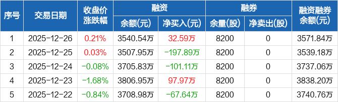 登康口腔:融资净买入32.59万元,融资余额3540.54万元(12-26)