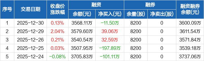 登康口腔:融资净偿还11.5万元,融资余额3568.11万元(12-30)