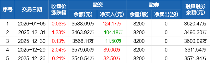 登康口腔:融资净买入124.17万元,融资余额3588.09万元(01-05)