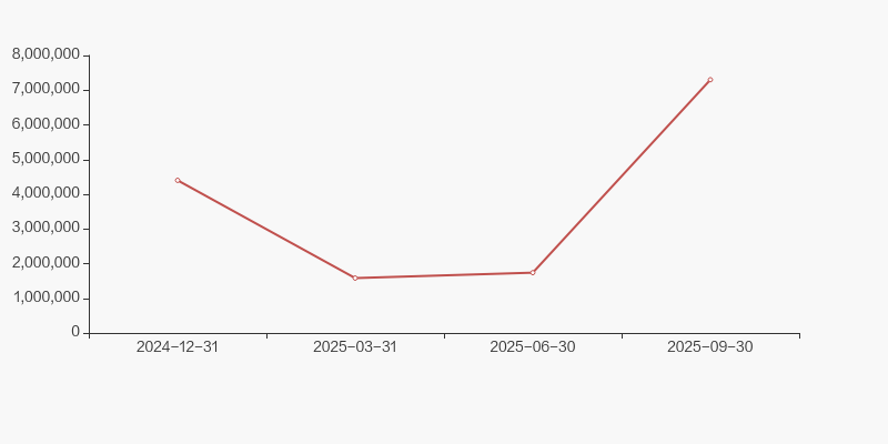截至2025年9月30日,公司最新总股本为13.75亿股,其中流通股本为10.65亿股。户均持有流通股数量由上期的1.83万股上升至1.97万股,户均流通市值12.72万元。