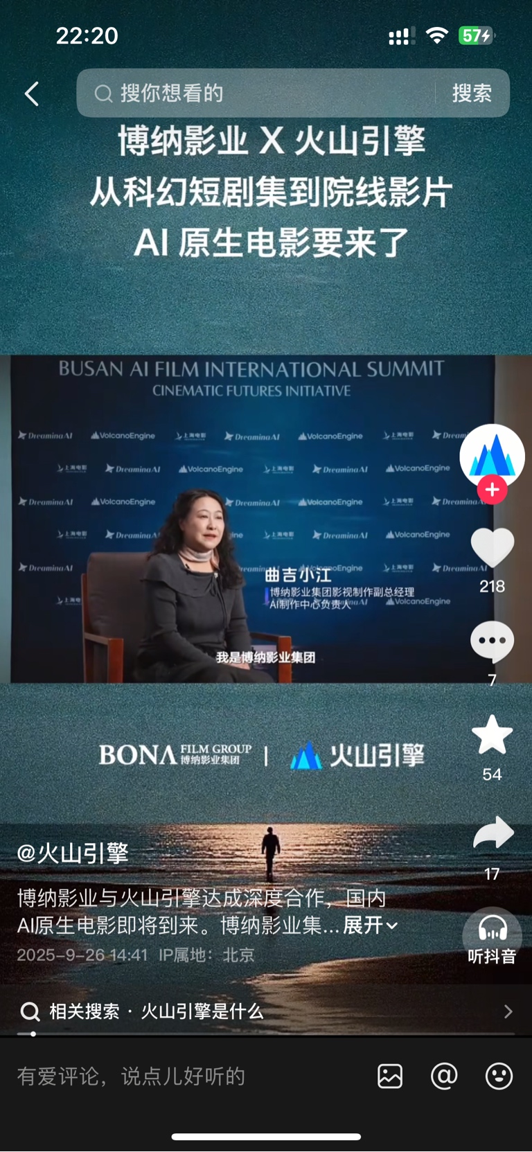 $博纳影业(SZ001330)$ 火山引擎冬季FORCE原动力大会于12月18日 - 12月19日在上海举办。此次大会设有10个专题论坛和2000平沉浸式展区,到时候应该会展出与博纳合作的三星堆往事电影预告片,叠加阿凡达3上映,很有预期。