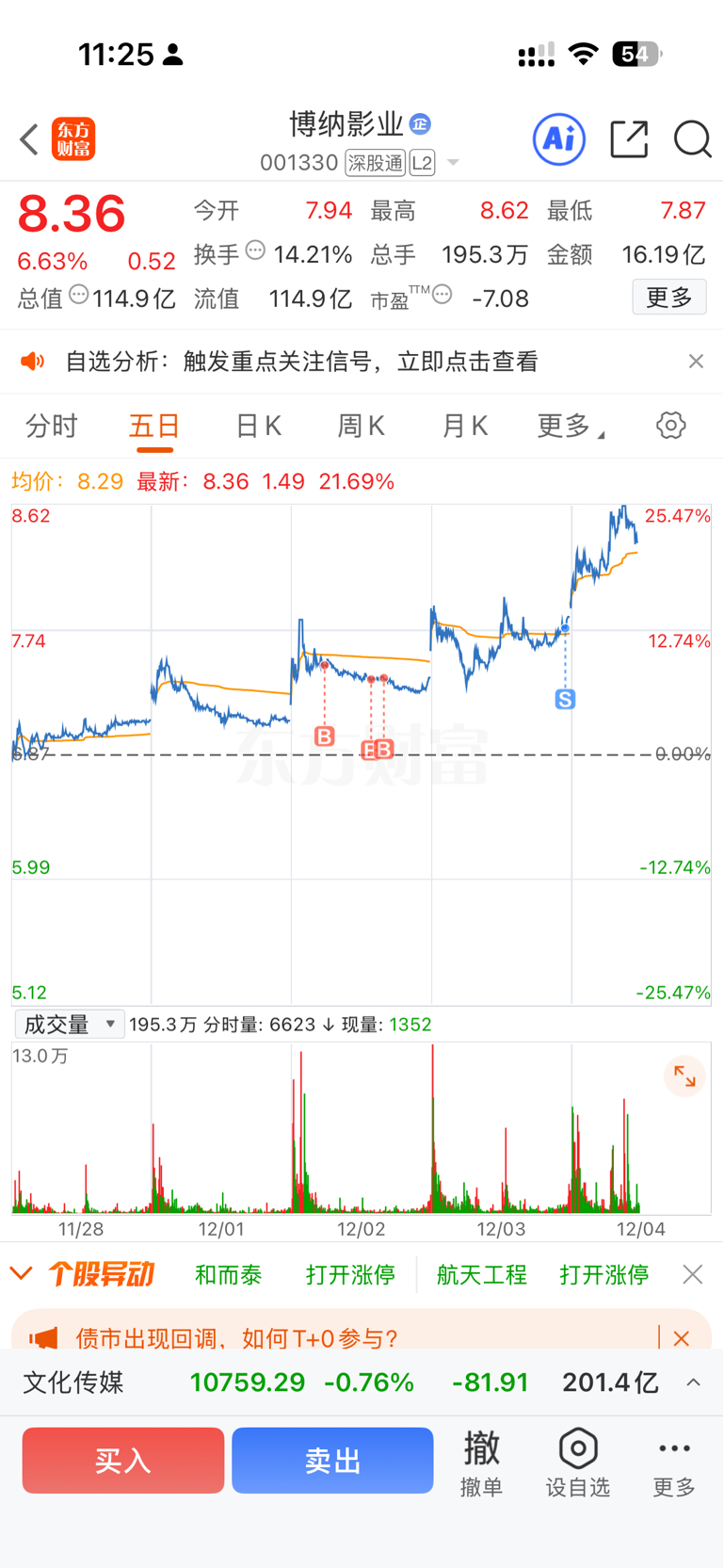 $博纳影业(SZ001330)$ 相对比于卖飞 我更相信确定性 今天再追的没有性价比