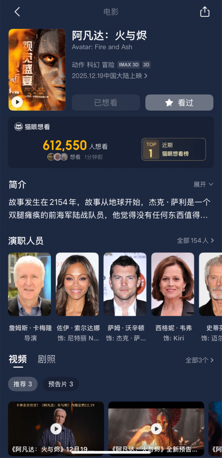 反正已经建仓了,你随便割我,我每天来回报战况!目前61万人想看阿凡达3!