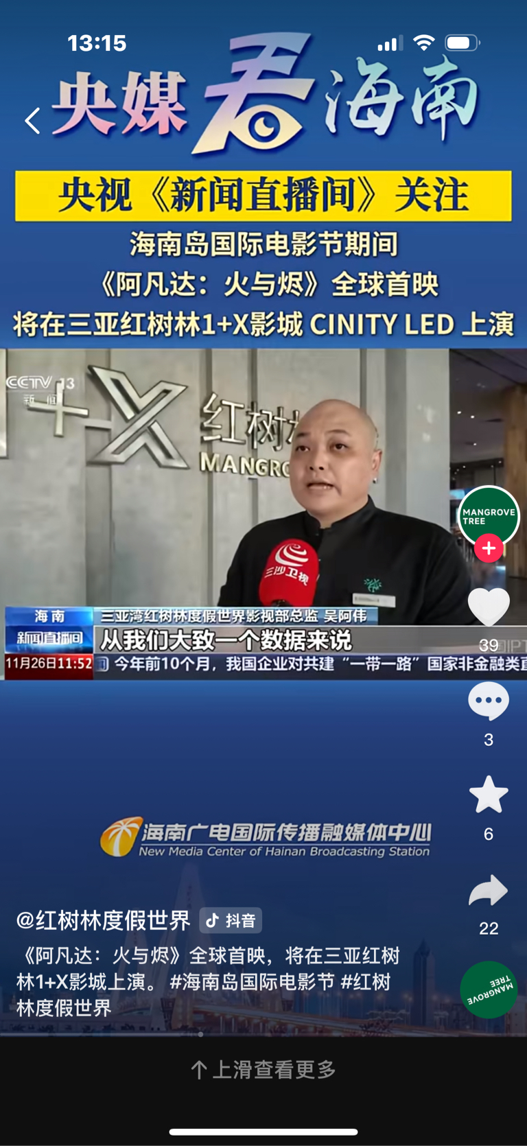 《阿凡达3:火与烬》会在海南举办中国首映礼,具体于12月8日第七届海南岛国际电影节期间,在三亚红树林1+X影城举行。