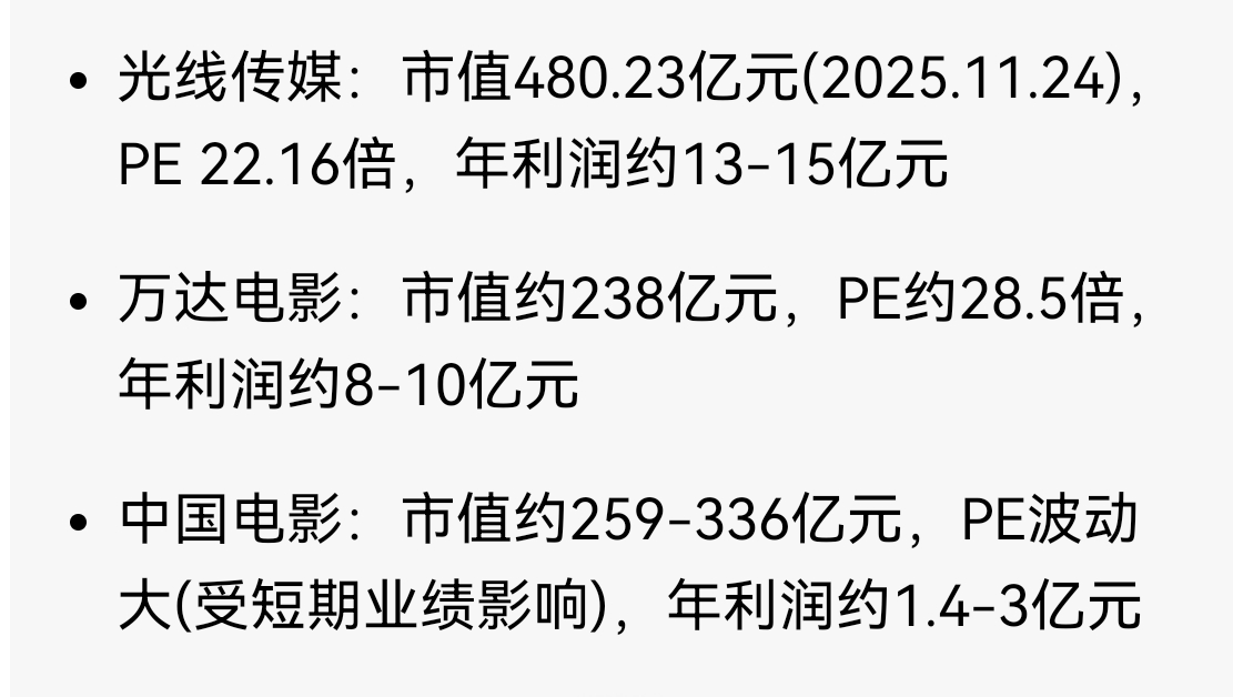 博纳影业的高潮在明年一季度,对标光线传媒,市值应该在400亿左右。2026年一季