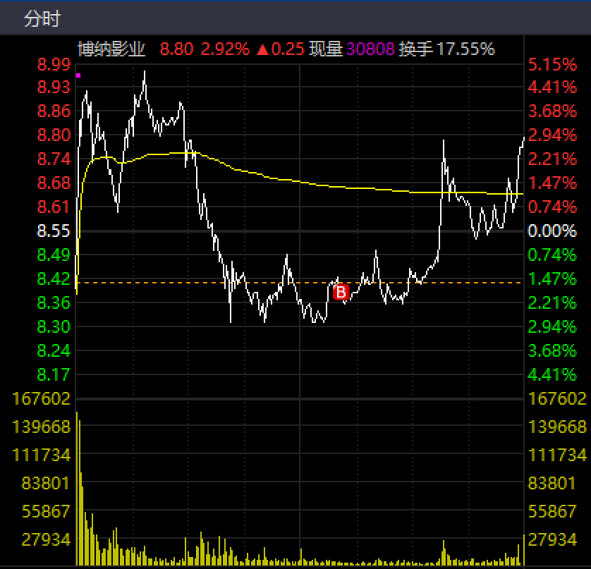 $博纳影业(SZ001330)$ 发现这个票晚了,好久没做电影票了,手痒又想着做一做,本着低吸原则B了一笔,本来想着今天B两次,但没给第二次的机会... 对博纳庄的手法一无所知,哪位大佬说说后续怎么看?