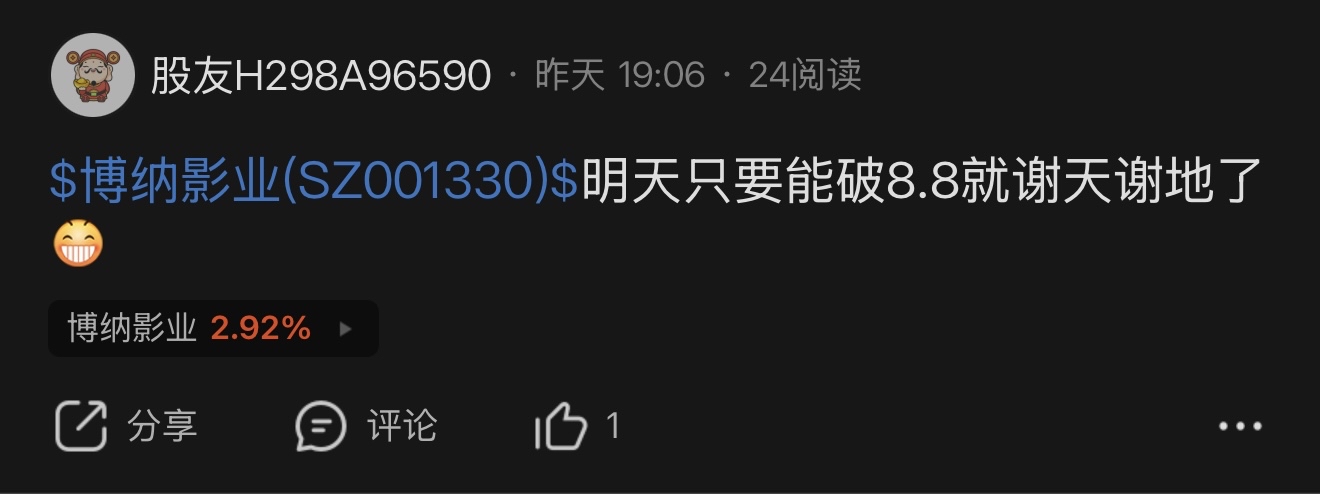 $博纳影业(SZ001330)$ 突然发现又预言准了
