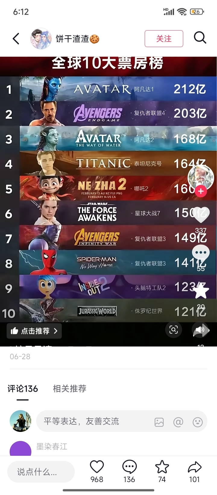 。只要阿凡达3剧情不拉胯,进前五应该没问题的