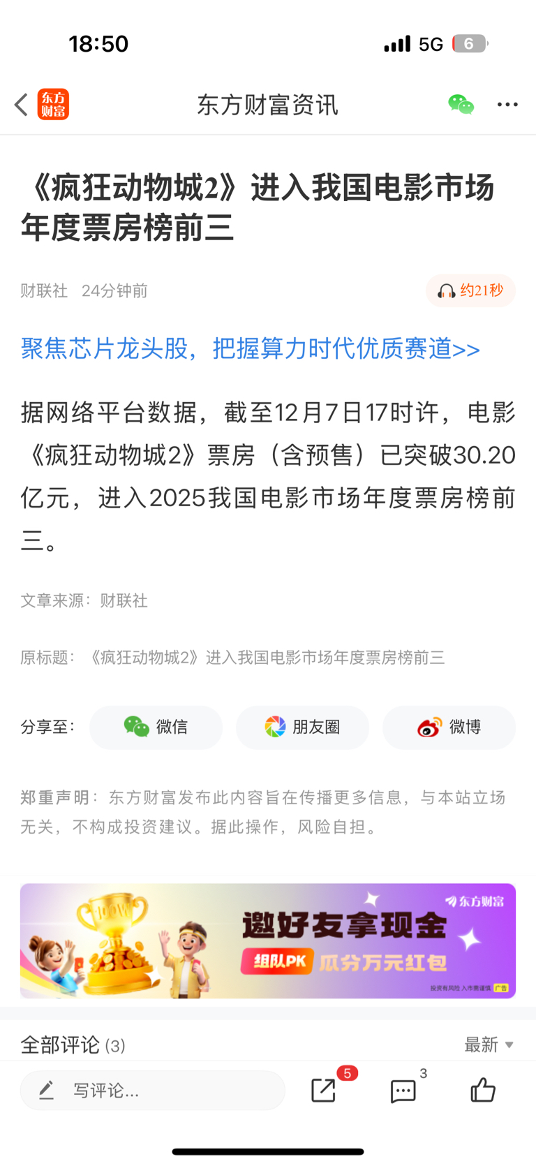 $博纳影业(SZ001330)$ $中国电影(SH600977)$ $幸福蓝海(SZ300528)$ 你们说明天影视板块会不会大涨,会不会带动博纳影业大涨?