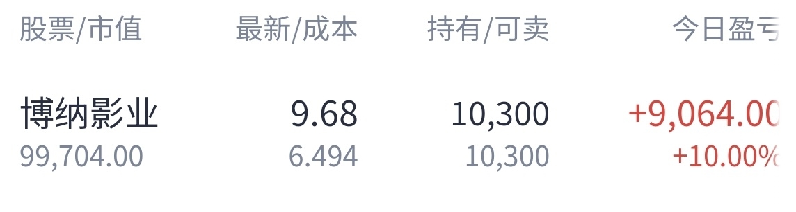$博纳影业(SZ001330)$ 6.50的成本上10元就清,这只票是我挣钱最多的一只