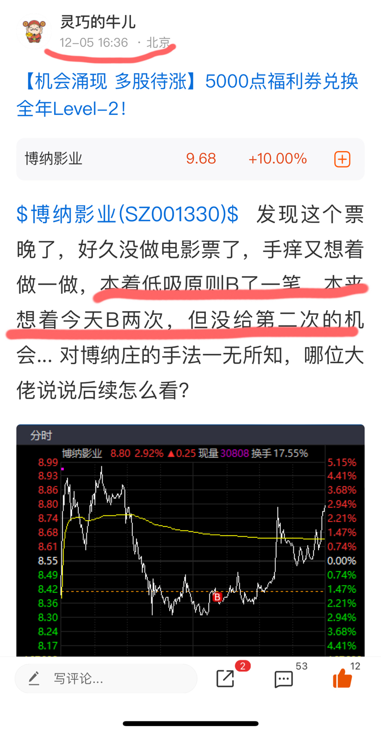 12月9日,博纳影业走势预测:周五B了一笔,今天直接走了加速,快速通过了前高压力