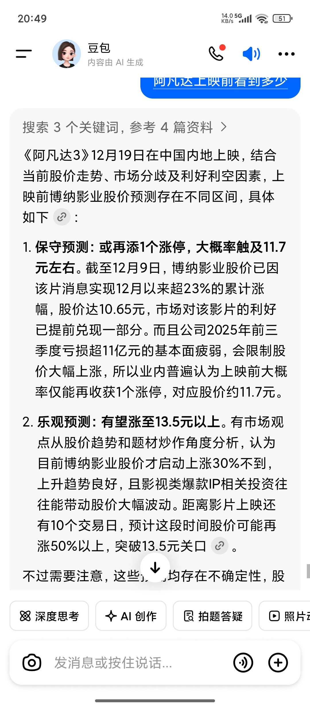 $博纳影业(SZ001330)$ 豆包这个分析还是挺靠谱的!