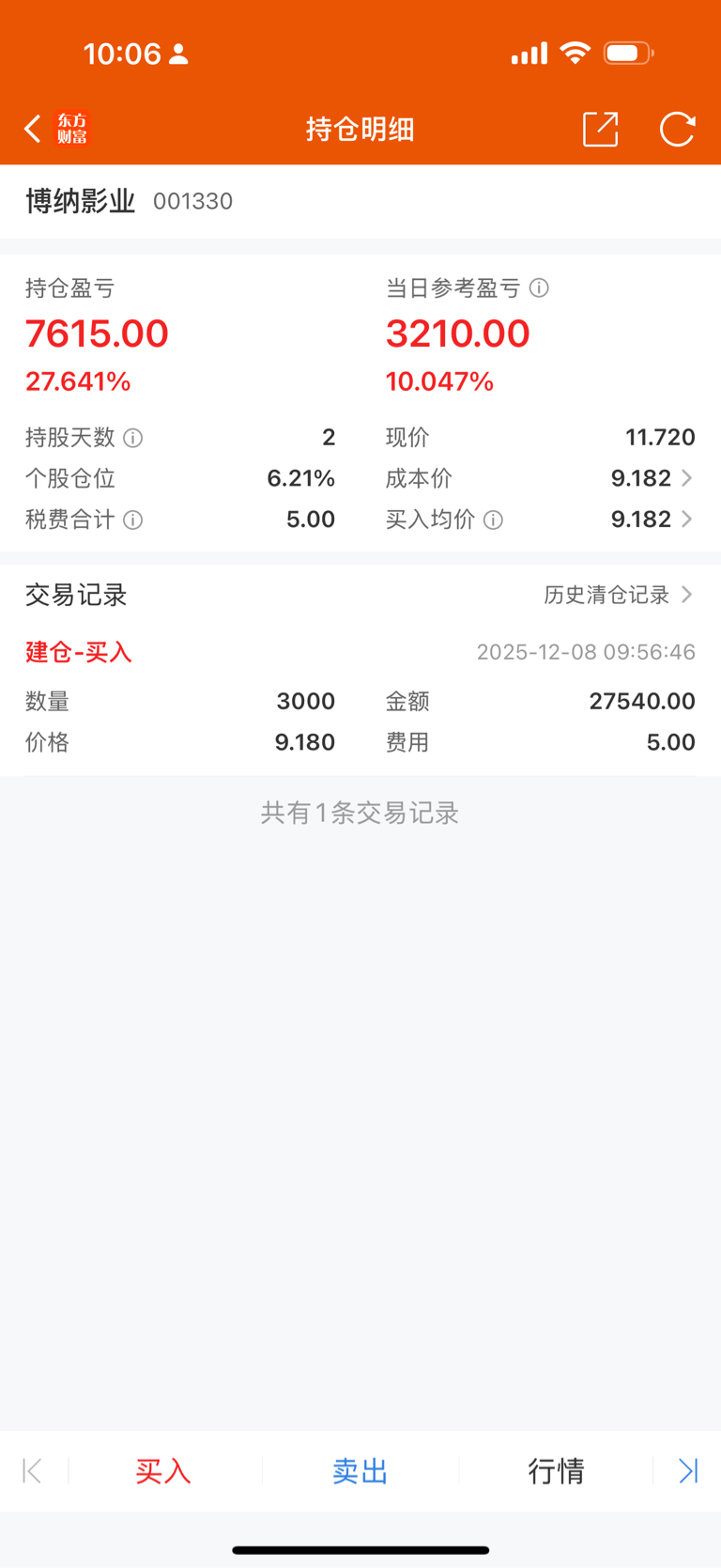 $博纳影业(SZ001330)$ 可惜了 买少了,大盘不好都是3000.5000的买~