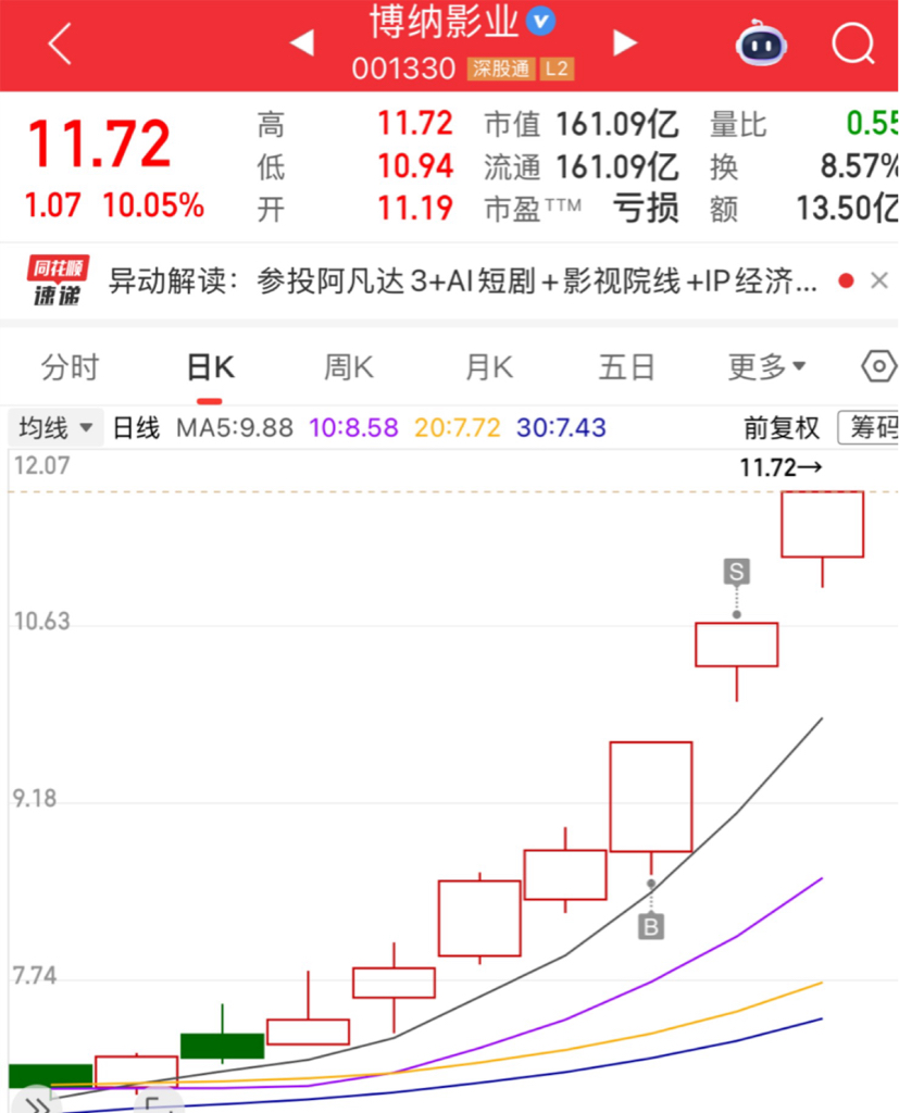 $博纳影业(SZ001330)$ 板上卖了,说等一次回调, 等的没机会上车了