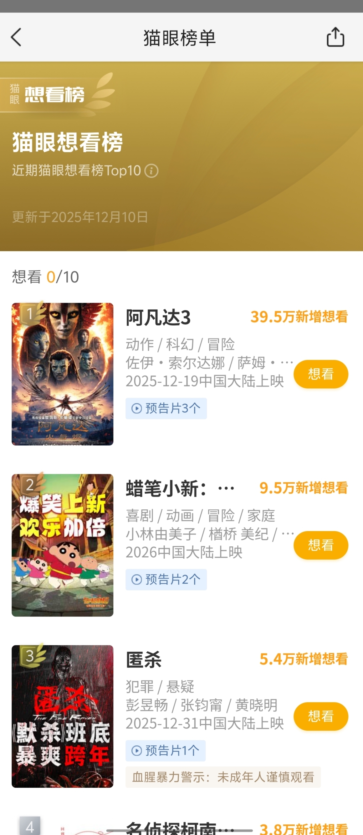 $博纳影业(SZ001330)$ 大家看看这个想看榜单拍第一名的