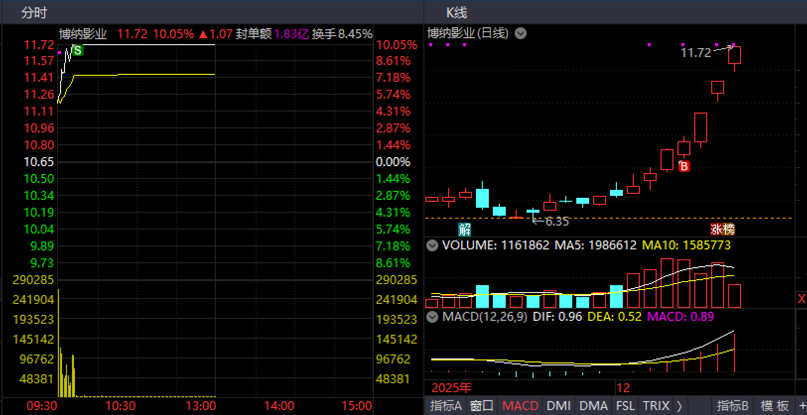 12月11日,博纳影业走势预测:今日走势很凌厉,高开后直接拉升上板,短时炸板后,