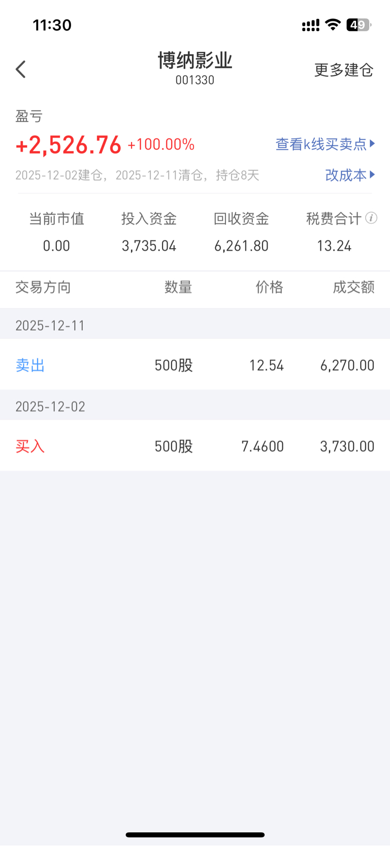 $博纳影业(SZ001330)$ 赚了将近70个点,走了,虽然钱少,但是满足了,祝车上的继续吃肉,我还会回来的