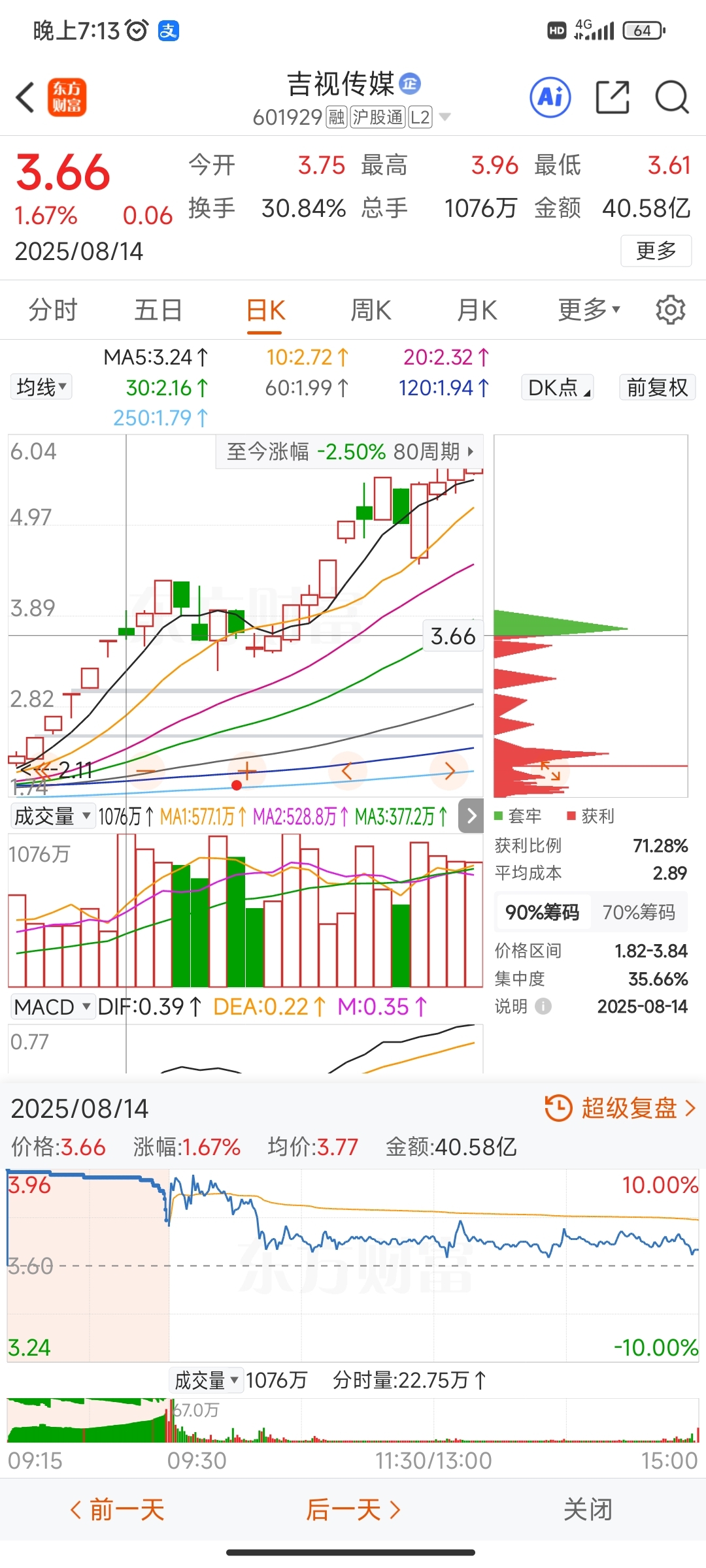 $博纳影业(SZ001330)$ 买了的朋友,可以参考一下吉视这一天。依旧看好能到15元。今天减仓了,明天再来买