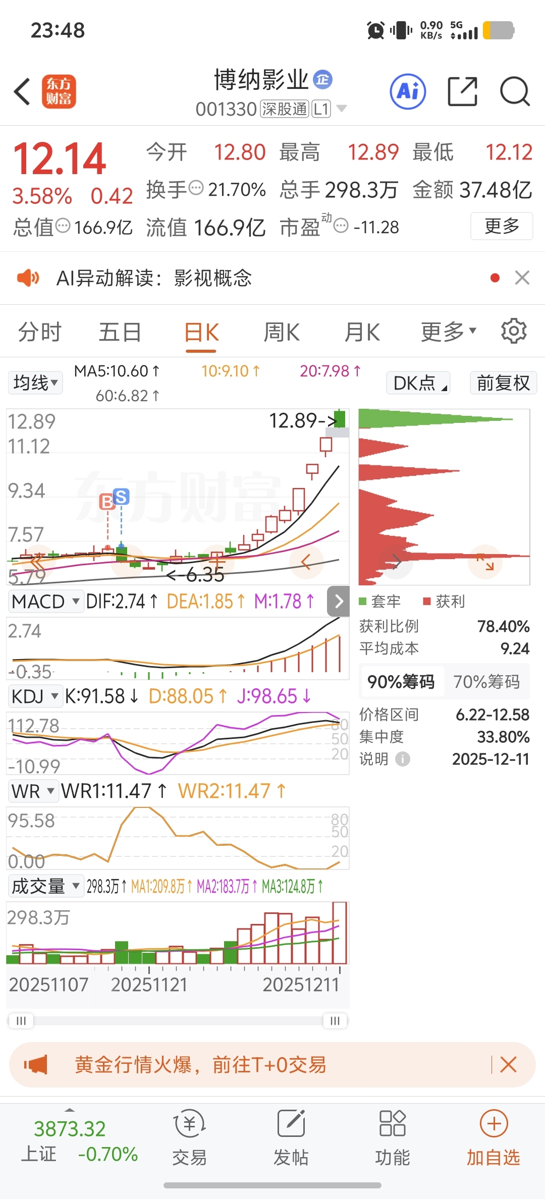$博纳影业(SZ001330)$ 纯卖飞