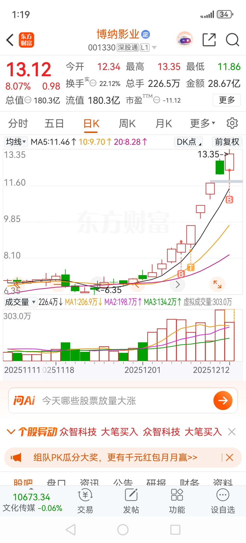 $博纳影业(SZ001330)$ 涨不涨停都无所谓,锁仓等周末发酵