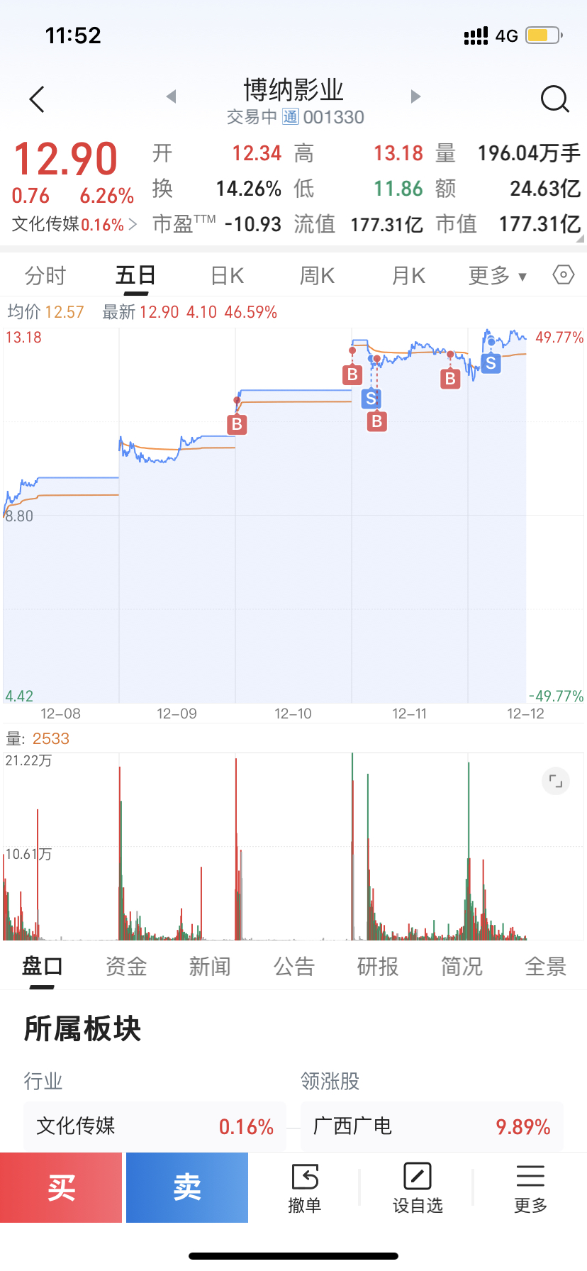 $博纳影业(SZ001330)$ 前两天胆子挺大的 今天怎么就格局不上了呢 哎