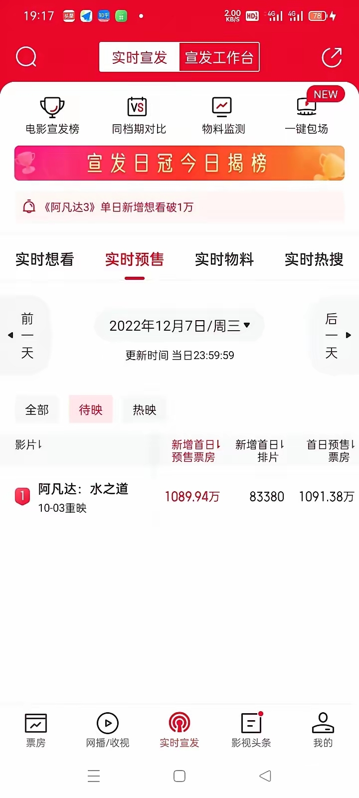 $博纳影业(SZ001330)$ 会不会扑街,阿凡达2首日预售是1千万哦
