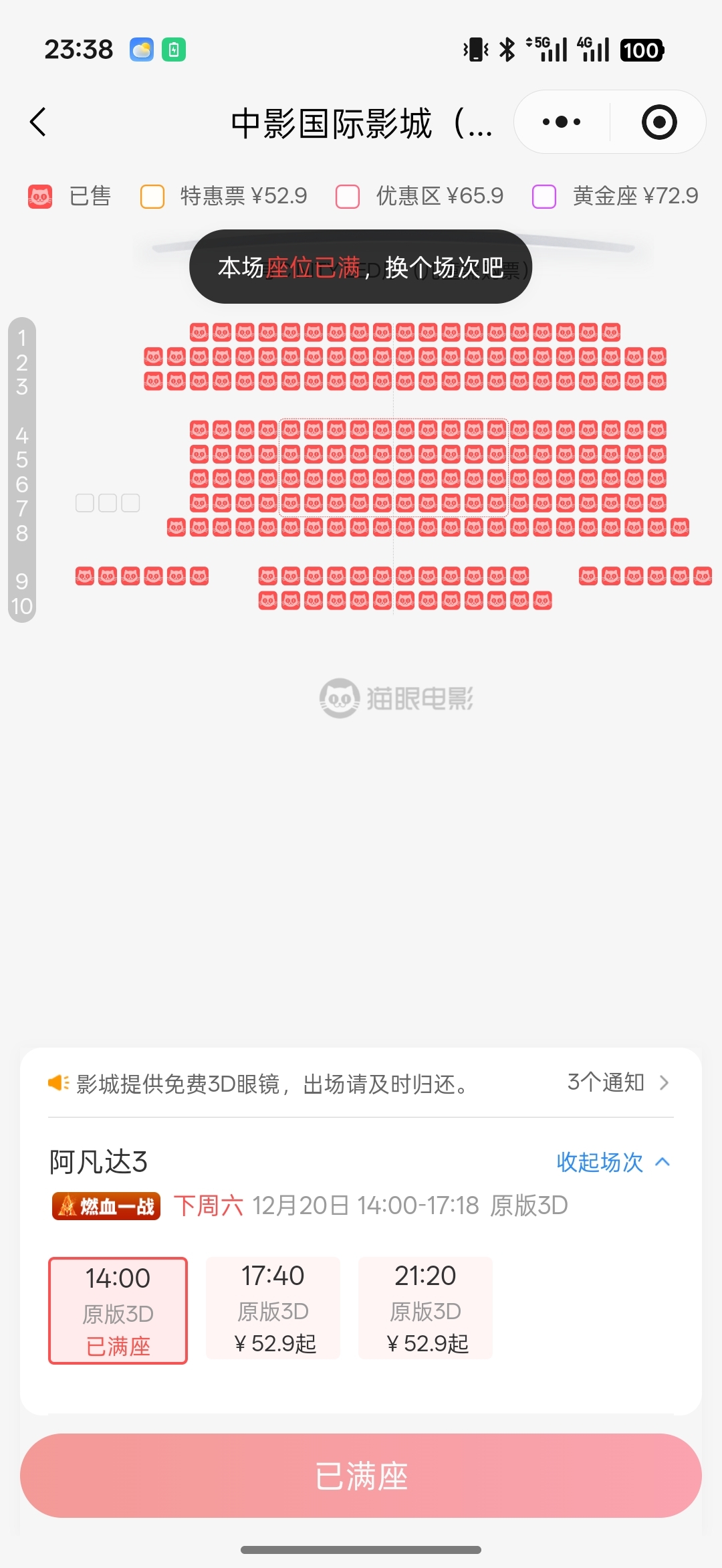$博纳影业(SZ001330)$ 个别影院,下午场次还是有满座的