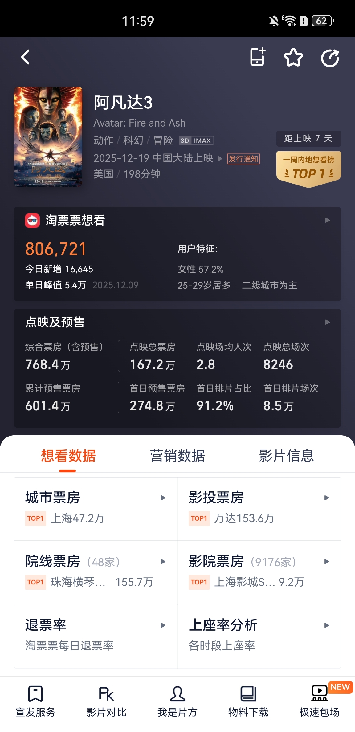 $博纳影业(SZ001330)$ 会不会扑街,阿凡达2首日预售是1千万哦