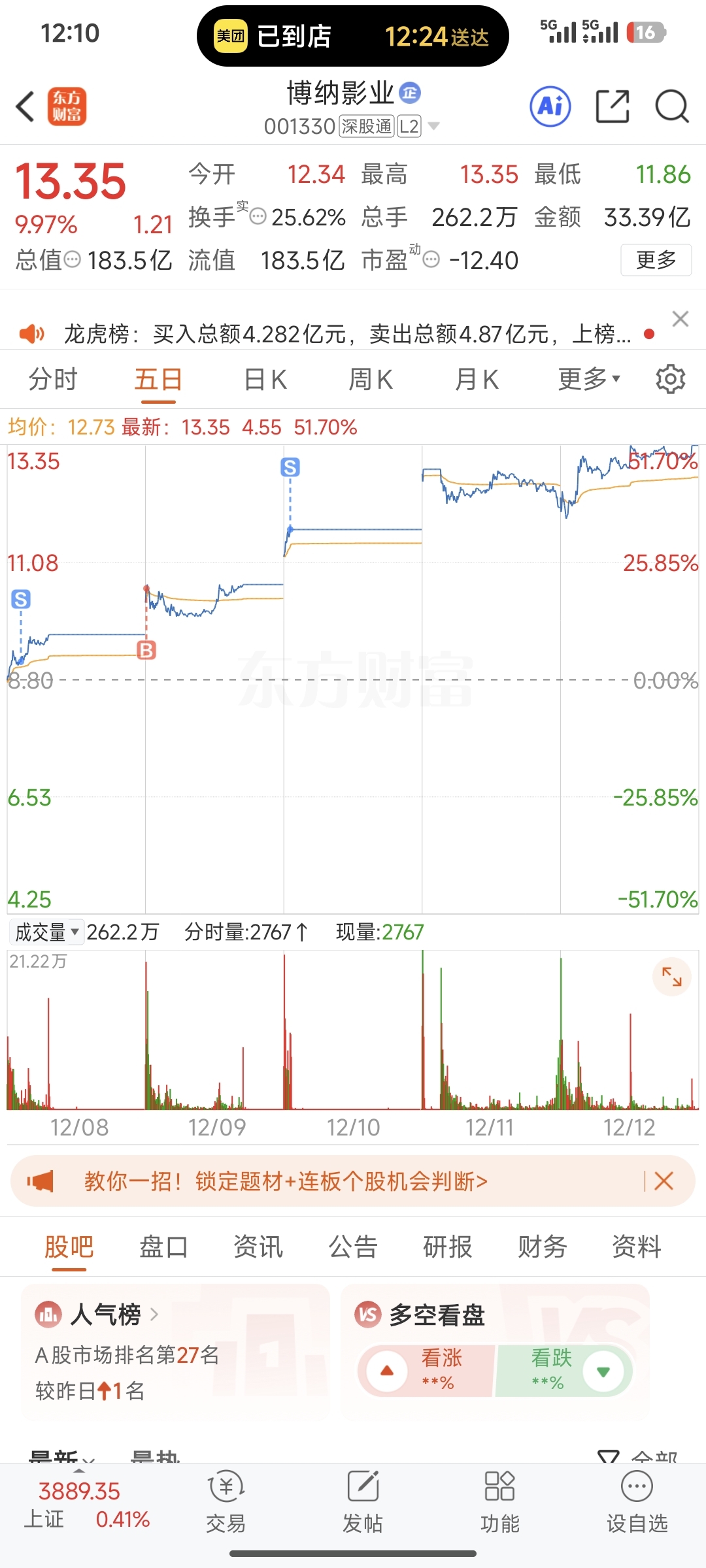 $博纳影业(SZ001330)$ 我是韭菜啊卖飞龙头第一人,这周拿着应该能有50个点的收益,到最后瞎折腾就剩下十来个点收益哎