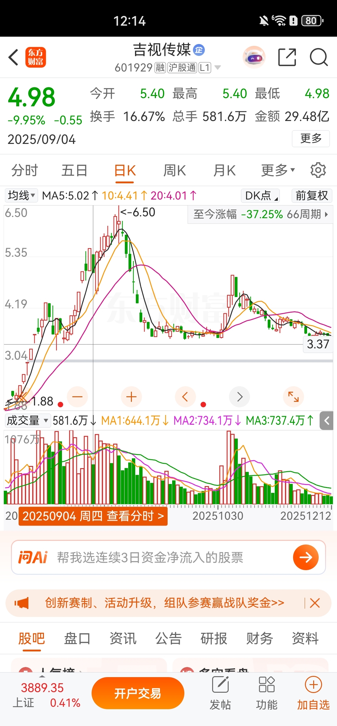 博纳周一的走势参考吉视传媒9月4日