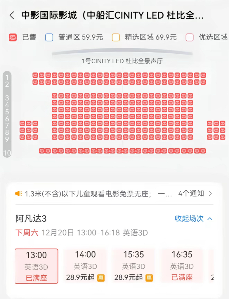 $博纳影业(SZ001330)$ 万人空巷,还有一周多上映,太恐怖了,刚看了附近的几个影城都买不到票了,看电影不应该当天才买票了,提前一周抢还是第一次遇到。