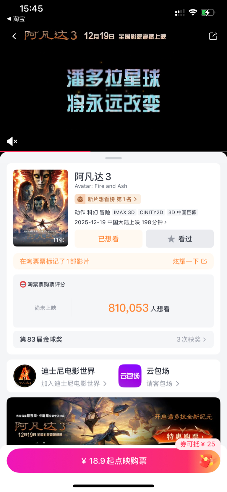 阿凡达3在线超810万人次观看厉害了