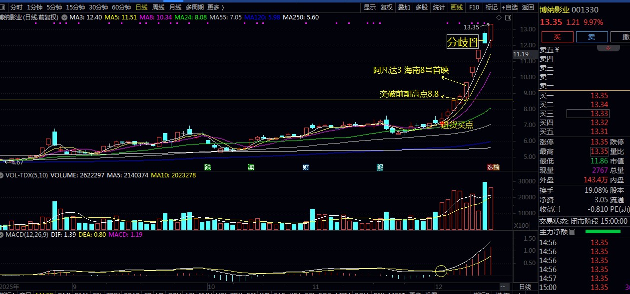博纳已经得到市场资金的选择了 目前上涨趋势中 阿凡达3 发酵中 情绪走独立逻辑