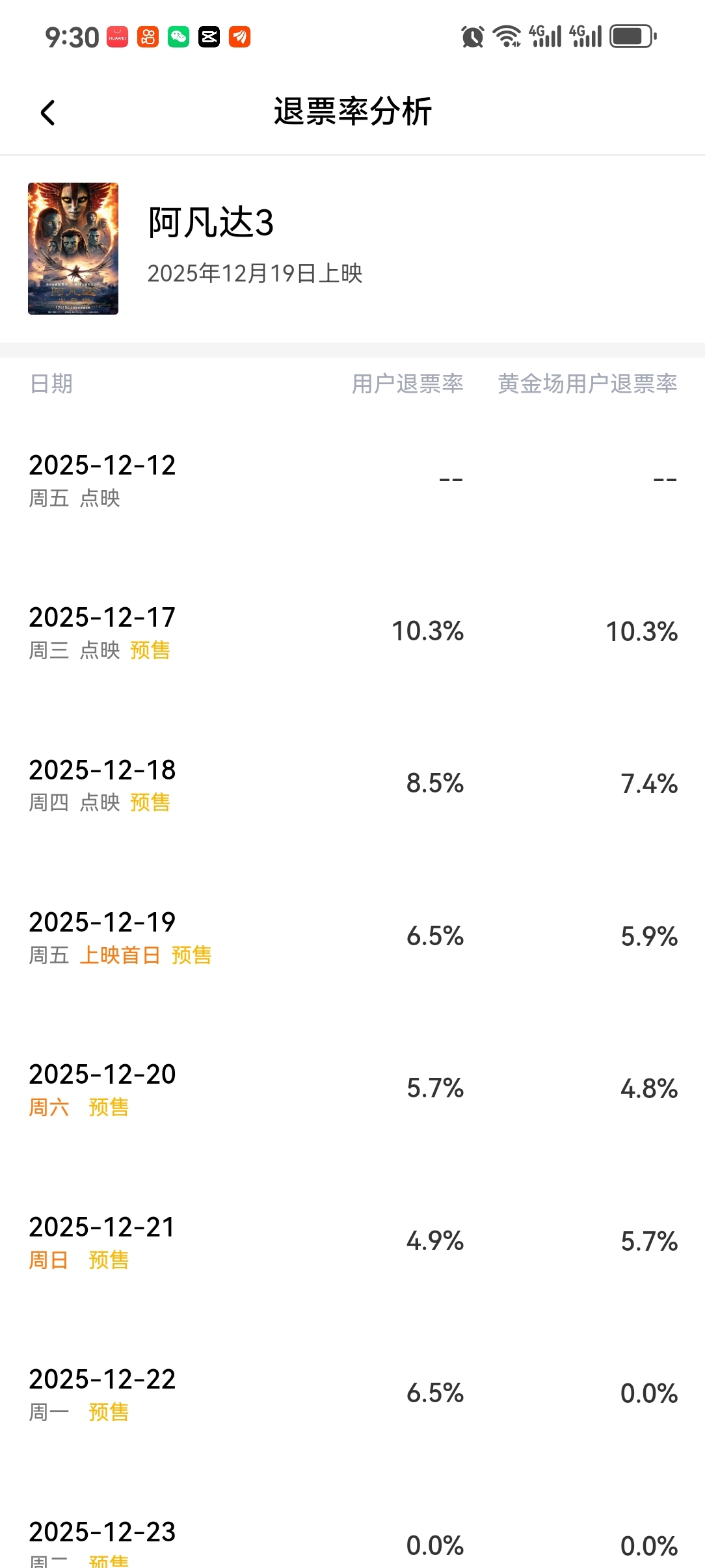 $博纳影业(SZ001330)$ 在看这退票率