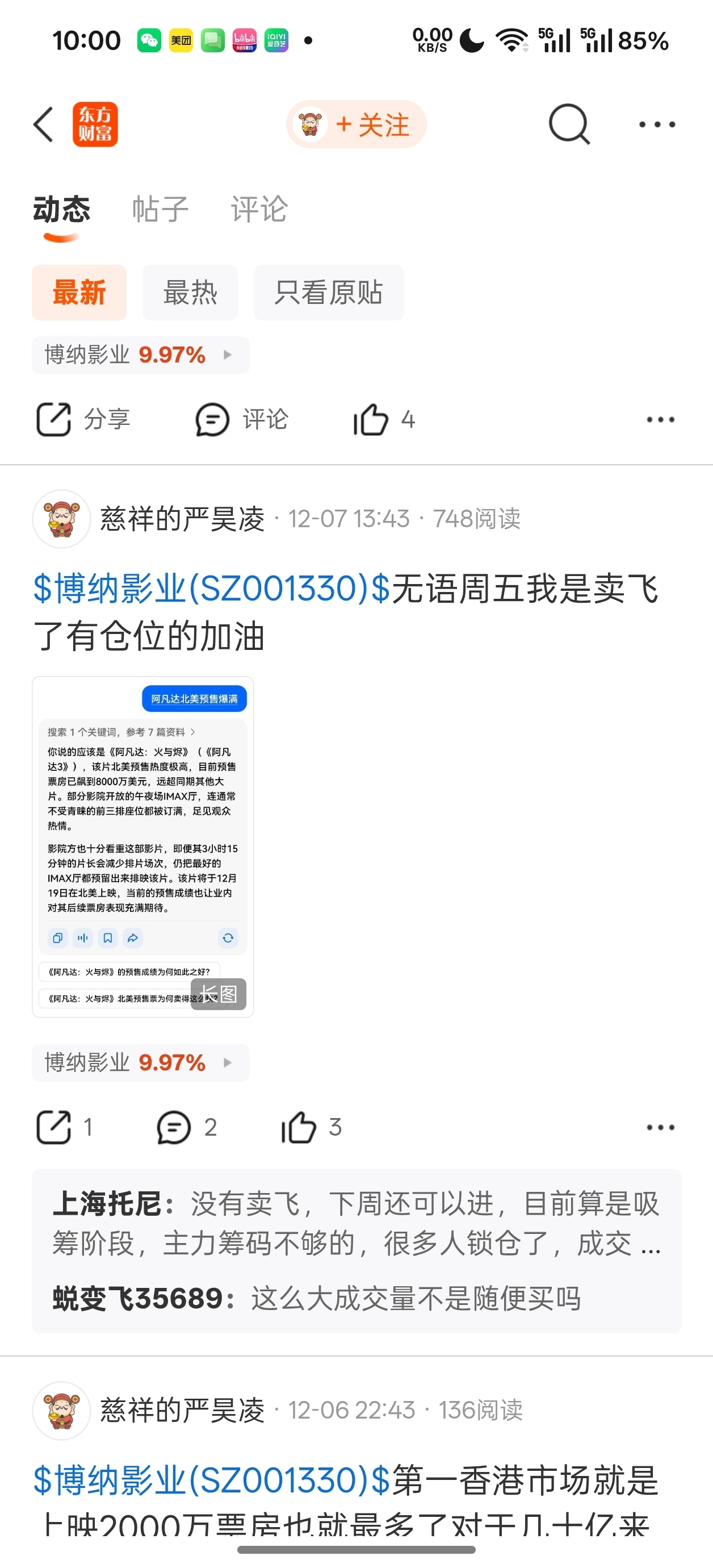 $博纳影业(SZ001330)$ 严昊凌你别在股吧唱空了,虽然你12月5号就卖飞了,但是最起码你是挣钱走的啊 要懂得感恩