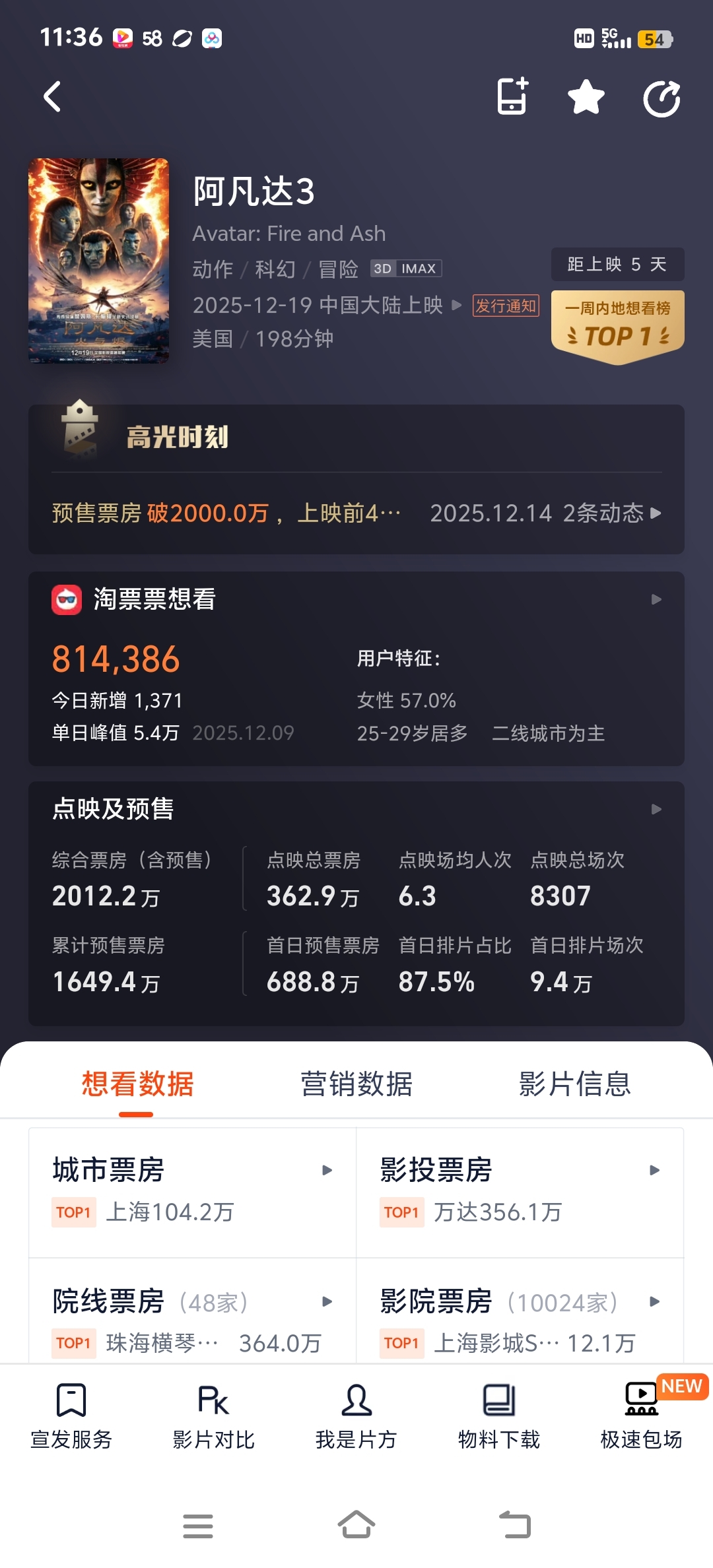 $博纳影业(SZ001330)$ 预售两千万,后面希望越来越好!我已半仓,留下的发财!